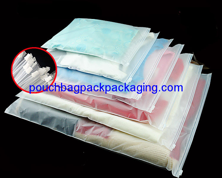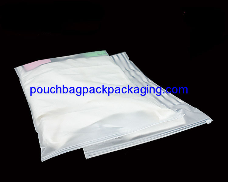 Custom slide garment bag, zip lock on top, printed zipper on top pouch bag