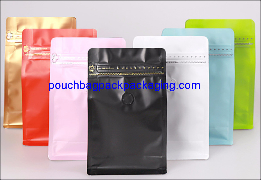 Block Bottom Coffee Bag With Front Zipper for 250g 500g 1kg packaging |