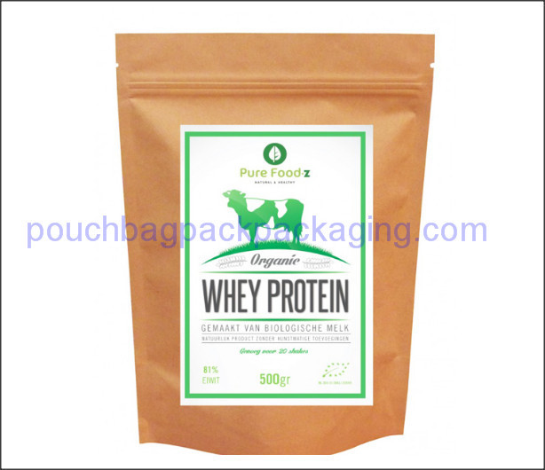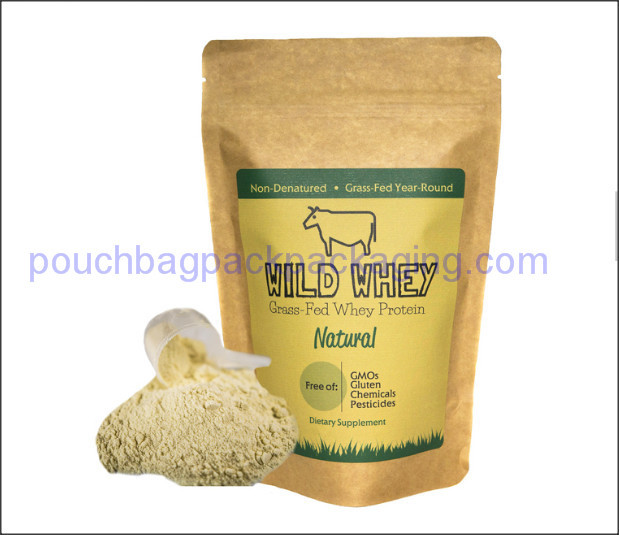 | Item: | Kraft packaging bag, paper stand up pouch, kraft doypack for protein | Material: | PET/kraft paper/PE, PET/VMPET/ kraft paper /PE, or custom |