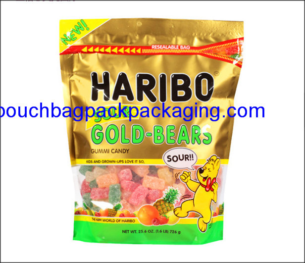 Stand up pouch, zip lock, gold printing doypack with zipper for candy 25.6OZ, 1.6LB, 726g