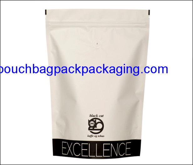 Feature for Stand up pouch, doypack with zip lock and valve for coffee packaging 300 g